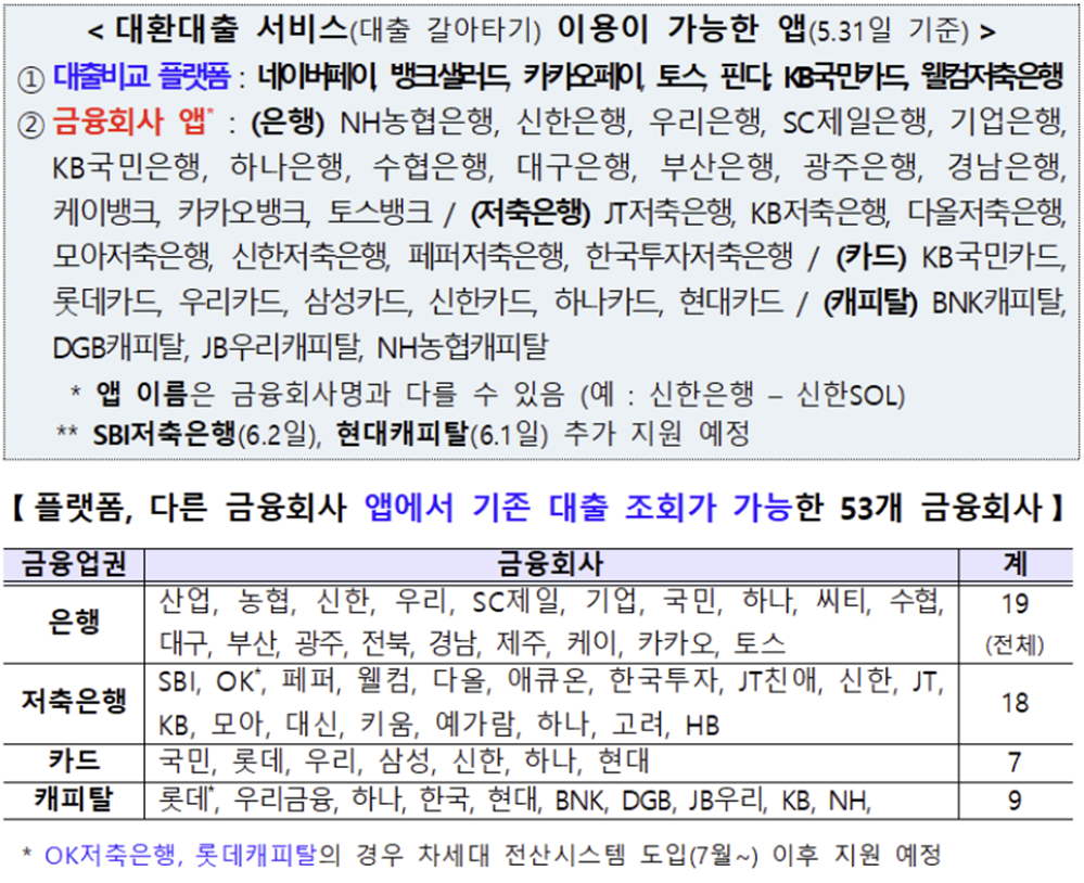 대환대출 플랫폼 참여 금융회사