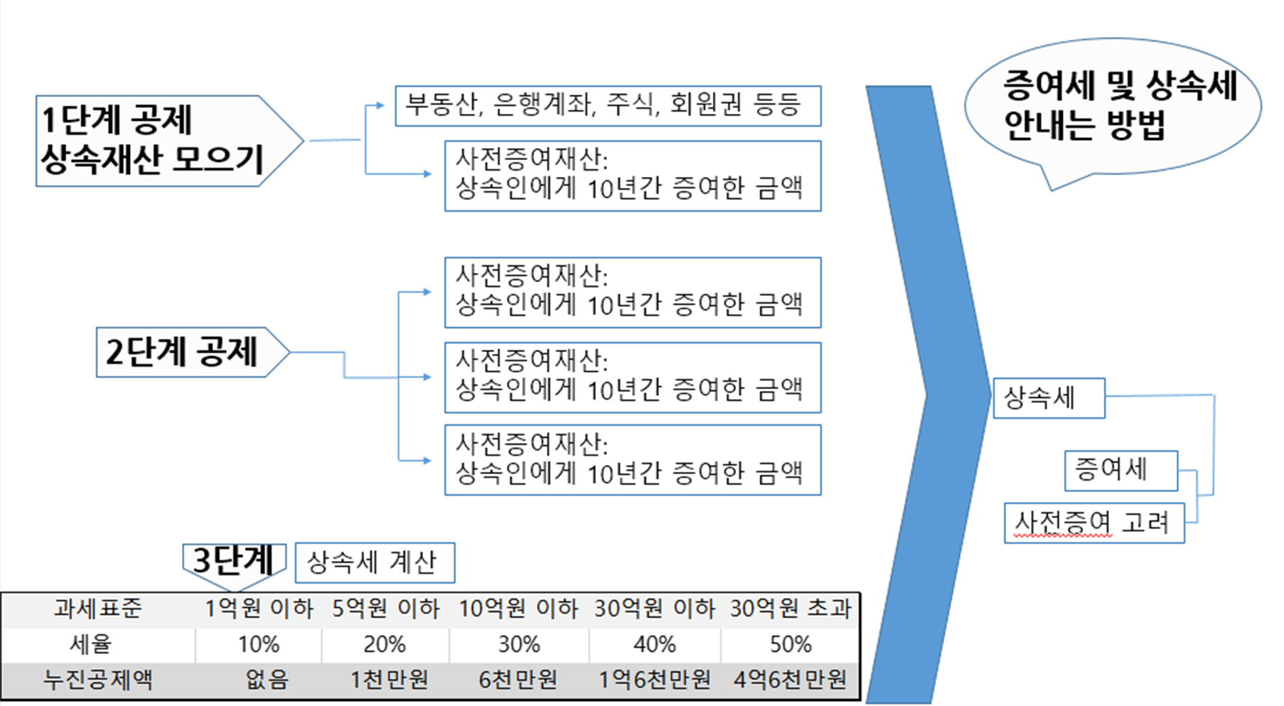 한국의 증여세와 상속세는 꽤 높은 편이다. 1억 이상이면 10% 세금 부과, 30억 넘으면 50%도 부과된다.