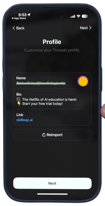 인스타그램에서 가져온 사용자 이름, 바이오, 링크 등이 자동으로 Threads 앱으로 가져와진다.