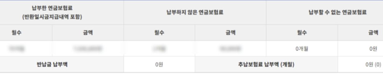 가입내역조회(클릭) 하면 아래 총 가입 기간이 나오는데 연금보험료, 추납보험료, 반납금, 실크레딧, 기여금 및 보험료 개별납부기간의 합산 기간입니다.