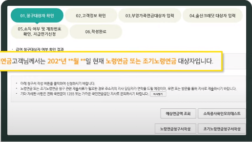 ▶ 노령연금 또는 조기노령연금 대상입니다라는 메시지가 나온다면 노령연금 청구가 가능합니다.