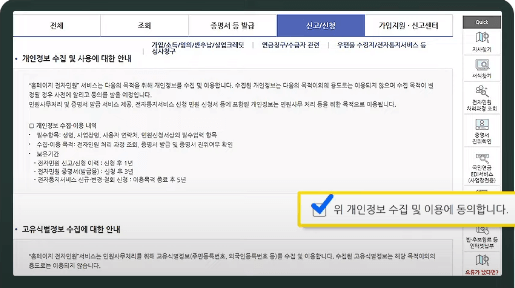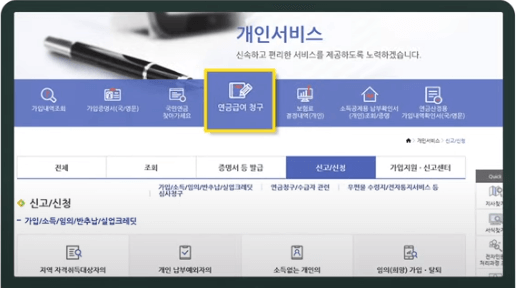 >>연금급여 청구(클릭) >> 개인정보 동의 여부 및 고유식별정보 수집.히용에 대한 확인사항을 확인후 채크