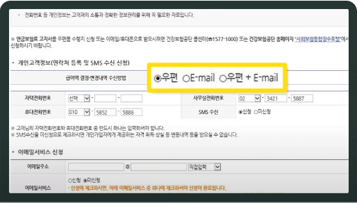 ▶ 급여액 결정.변경내역을 받으실 방법을 우편/이메일/우편과 이메일 중 선택해주세요