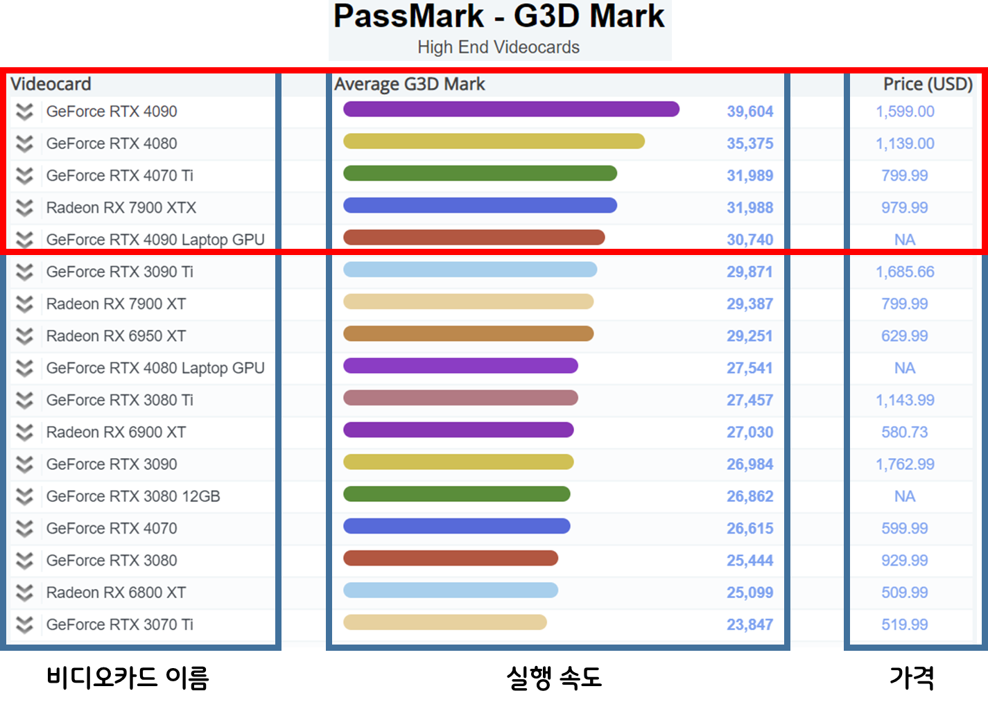 그래픽 카드 성능 순위 | 노트북 내장 그래픽 순위 | 그래픽 카드 성능 비교