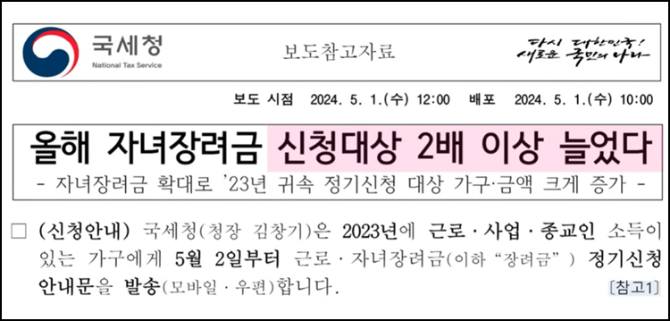 • 자녀장려금: 자녀가 있는 저소득 가구.