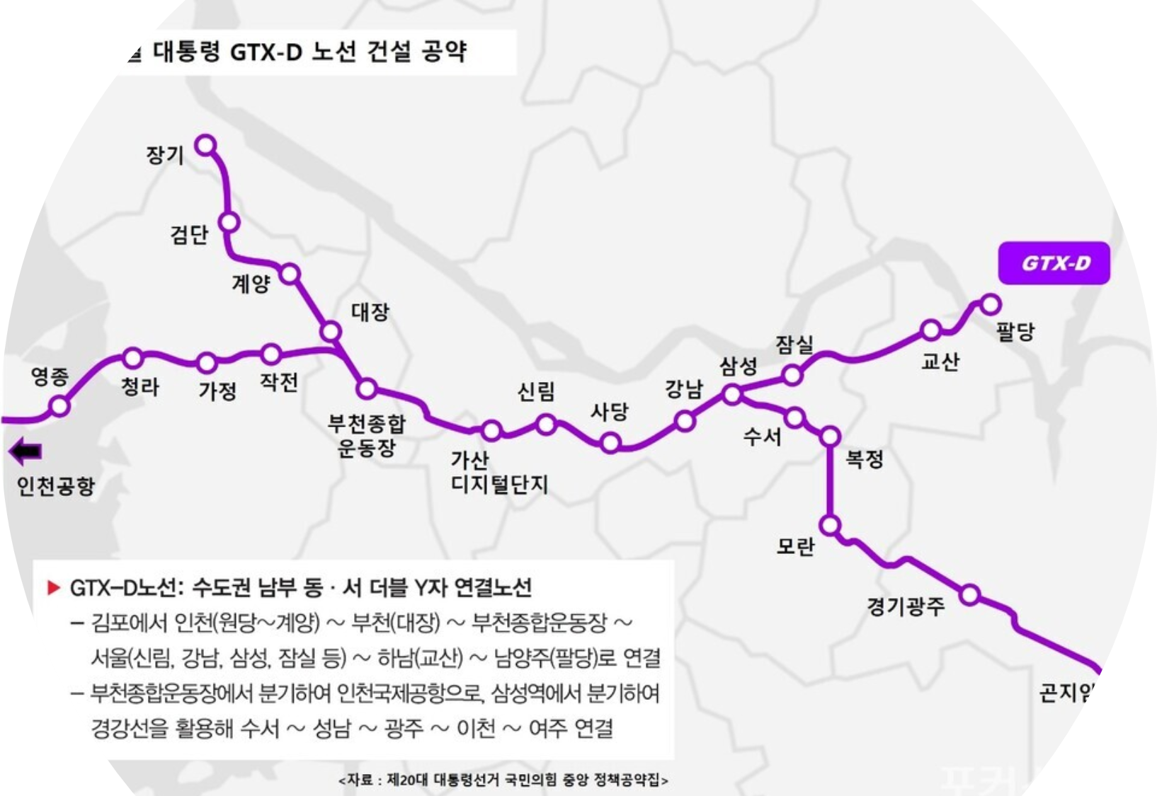 현재 추진 중인 GTX-D 노선(장기~부천종합운동장~여의도~서울역)의 향후 추진 여부가 불투명합니다.