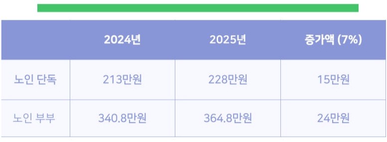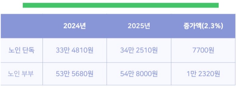 - 물가 상승률, 연금 소득 증가 등을 반영