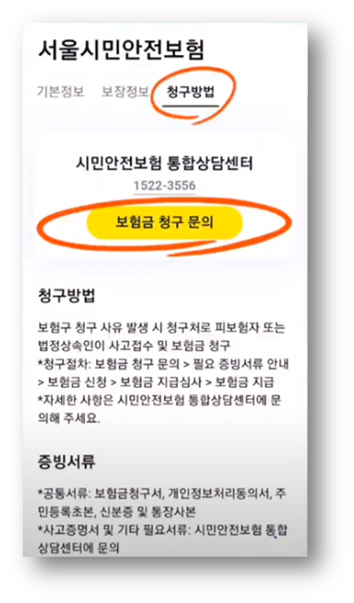 이 보험을 청구할 때에는 시민안전보험 통합상담센터의 문의해서 청구를 하시면 되겠습니다. 이곳은 상시 접수가 가능하니 참고하시면 됩니다.