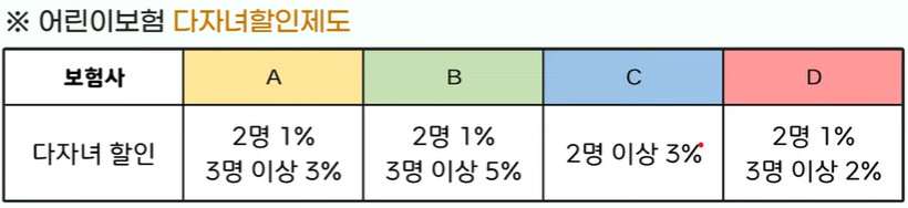 • 다자녀 할인이 가능하다.