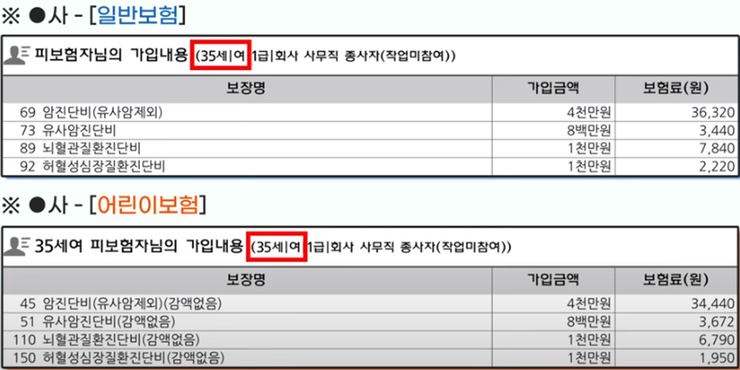 어린이 보험은 보통 만 35세까지 가입할 수 있습니다 개인에 따라서는 일반 보험이 더 보험료가 낮을 수도 있고요 혜택이 좋을 수도 있어요 하지만 몰라서 딱 하나만 보고 가는 것보다는 내가 이익이 되는 쪽으로 선택지를 하나 더 가져갈 수 있다는 거 이것도 평생 가져갈 금융상품을 선택할 때는 정말 중요한 부분이 아닌가 싶습니다 내 기준에 맞춤 설계로 확인을 꼭 해보시길 바랍니다.