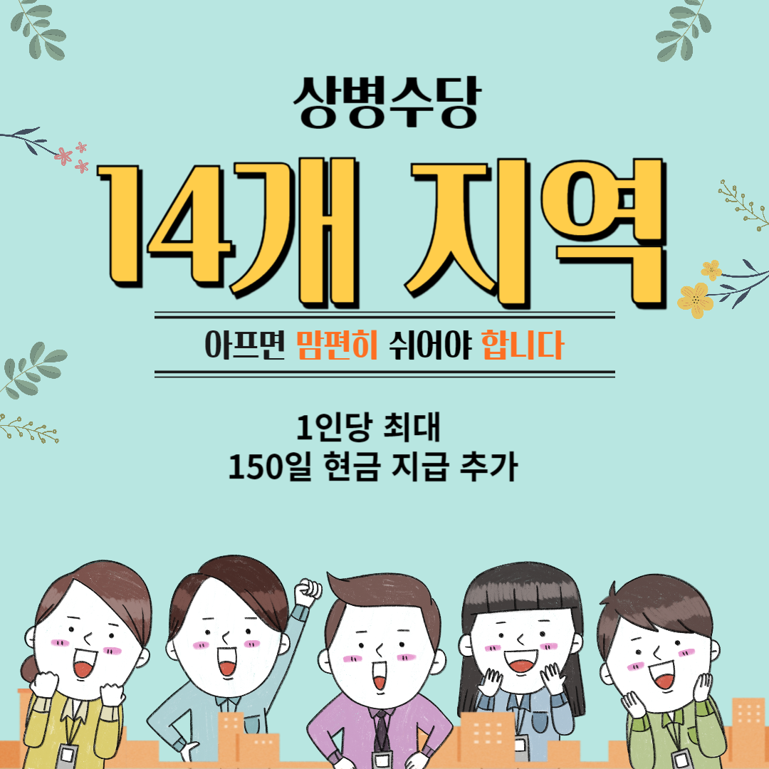 이로써 기존 10개 지역을 포함해 총 14개 지역에서 상병수당이 지급됩니다. 상병수당은 근로자가 업무와 관련이 없는 부상이나 질병으로 경제활동이 어려운 경우, 치료에 집중할 수 있도록 소득을 보존해주는 제도입니다.