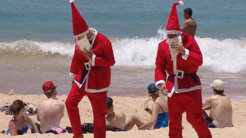 호주의 본다이 비치(Bondi Beach)는 북반구의 크리스마스 분의기와는 정반대인 분이기의 눈과 데코로 유명합니다. 이곳에서 크리스마스는 모래, 태양, 서핑으로 크리스마스를 즐기기에 가장 좋은 장소 중 하나입니다. 밴드와 DJ로 완벽한 축제 분위기가 조성됩니다. 이색적인 크리스마스를 경험하고 싶다면 이곳을 추천합니다.