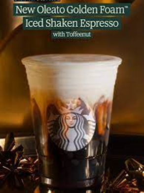 스타벅스 코리아가 25주년을 기념하여 7월 19일부터 8월 1일까지 2주간 한정 판매하는 '올레아토 골든폼 아이스 쉐이큰 에스프레소 with 헤이즐넛'입니다.