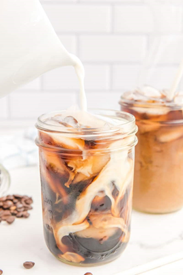 • 얼음 위에 콜드 브루 커피를 부어 마십니다.