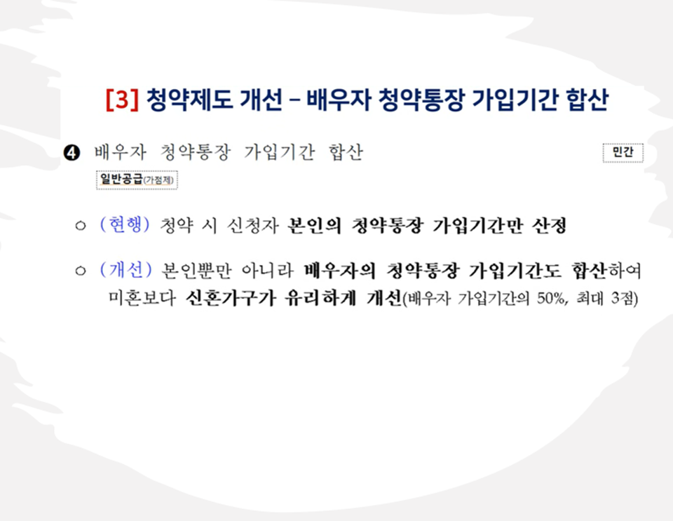 ● 민간분양: 생애최초와 신혼부부 특별공급 시, 출산 가구에 우선적으로 공급합니다.