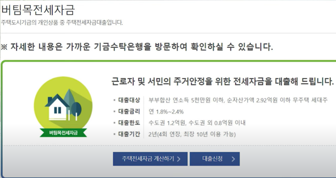 두번째로 대표적으로 버팀목 전세 대출이 있겠습니다 내가 현재 19세 이상 대출신청일 시점에 무주택 세대주이거나 신혼부부라면 무조건 우선적으로 알아보시면 되겠습니다