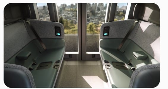 Zoox의 로보택시는 자율 주행을 위해 기존 자동차를 개조하는 대신 맨 처음부터 완전 자율 차량으로 제작되었으며 스티어링 휠이나 페달이 없으며 4명의 승객이 서로 마주보고 앉을 수 있는 공간이 있습니다.
