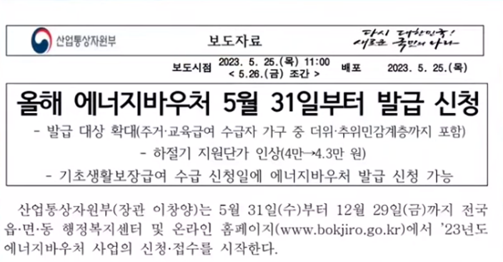 에너지 바우처: 정부의 에너지 응원금을 소개합니다.
