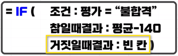 내용은 E7에 140보다 크거나 같으면 "합격" 그렇지 아니면 "불합격"을 나열하라 (※문자는 (" ")따운표 안에있어야 되는거 참고)