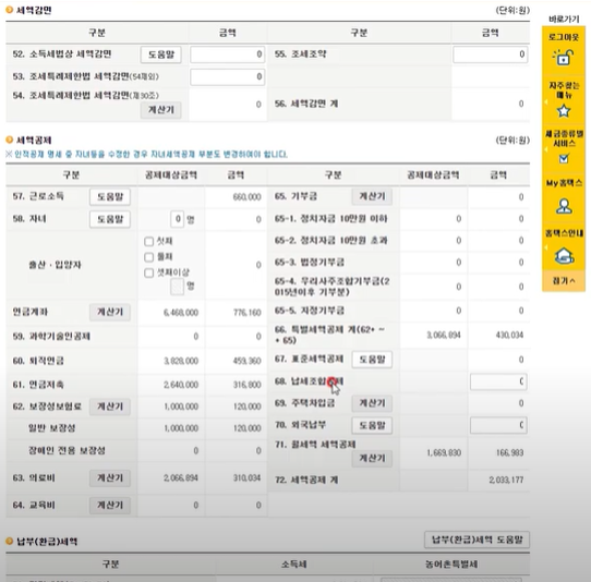 신고된 내용을 확인하려면 소득 세액공제 명세서 탭들을 모두 클릭하여 확인 하기 바랍니다