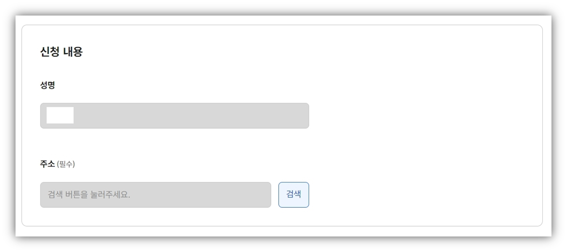 이름을 확인하고 주소를 입력한 뒤에 수령 방법을 선택하고 신청하면 완료됩니다.