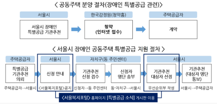 기관추천(장애인) 특별공급: 지자체 또는 한국장애인개발원 등 추천 절차를 거쳐 신청