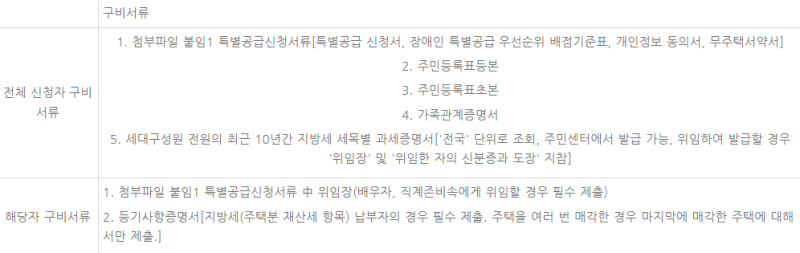 장애인 특별공급을 신청할 때 필요한 서류는 다음과 같습니다