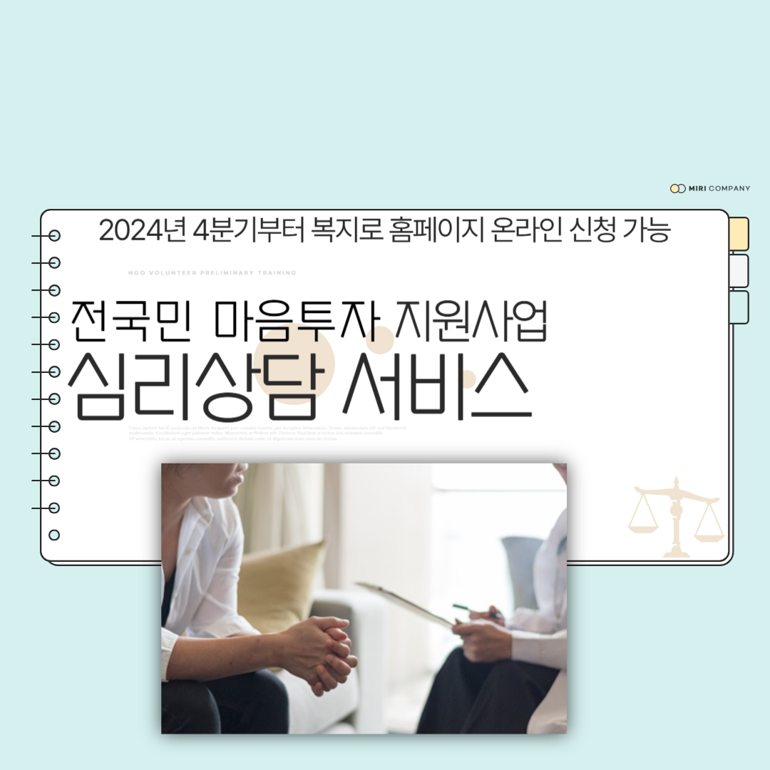 보건복지부가 실시하는 '전국민 마음투자 지원사업'에 대해 다루고 있습니다. 이 사업은 정서적 어려움이 있는 국민들에게 전문적인 심리상담 서비스를 제공하여 국민의 마음 건강을 돌보고 자살 및 자해 예방을 목표로 하고 있습니다.