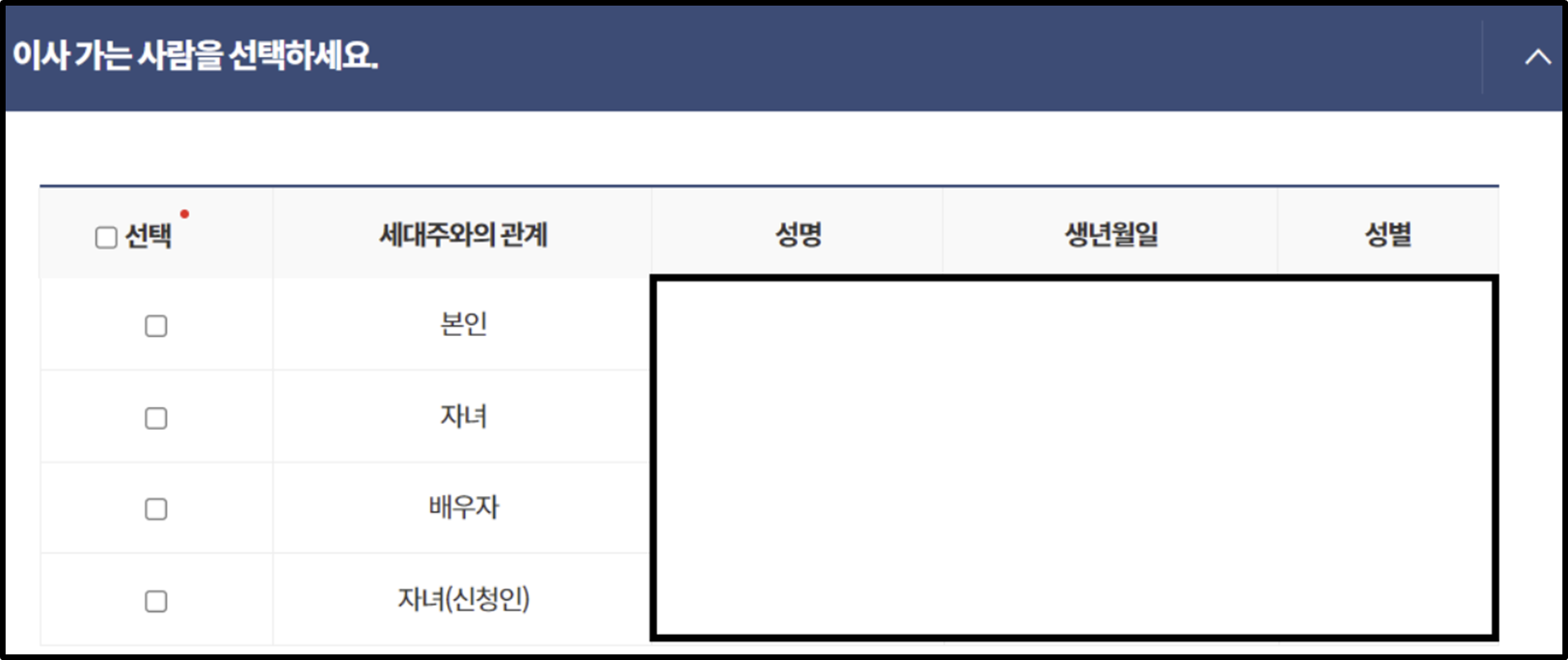 [해당되는 전입을 가는 사람을 선택해주시고 진행합니다.]