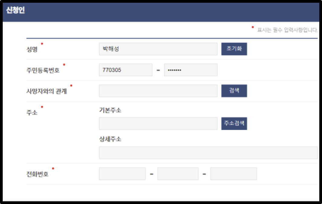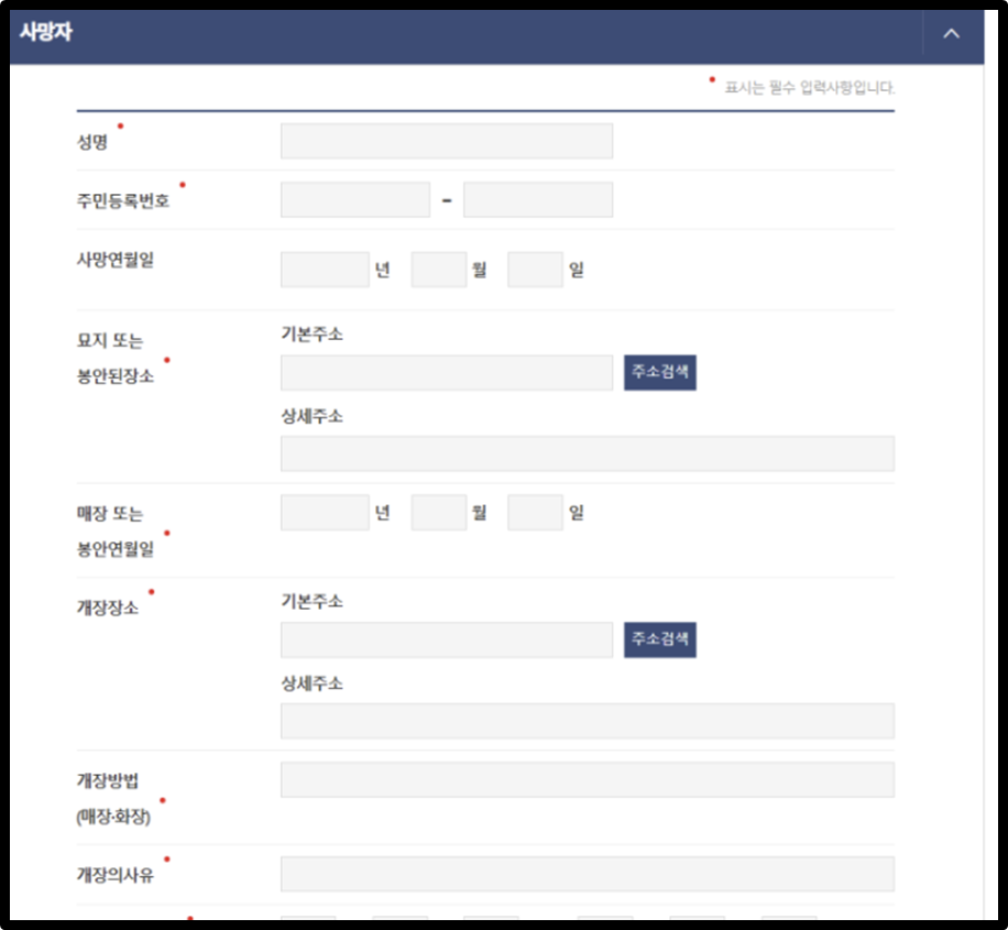 [사망자 정보 입력]