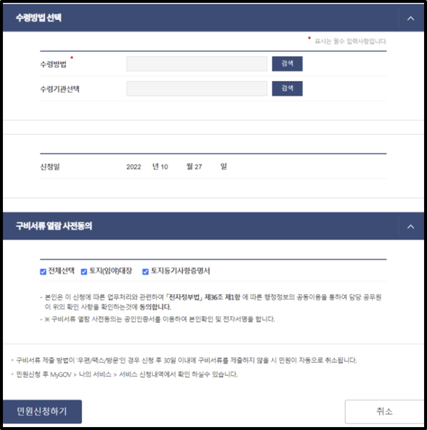[수령 방법 선택 후 제출]