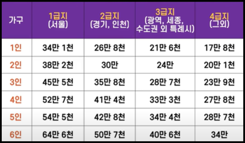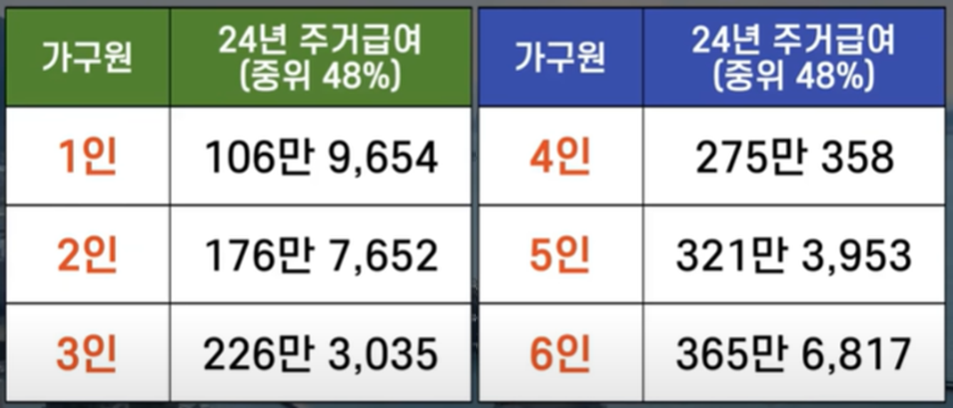 [2024년 임차가구 기준 받을 수 있는 주거급여]