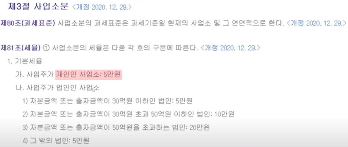 개인사업장은 일정한 금액(5만 원 이상)을 내야 하며, 법인사업자는 자본규모와 면적에 따라 다른 금액이 부과됩니다.