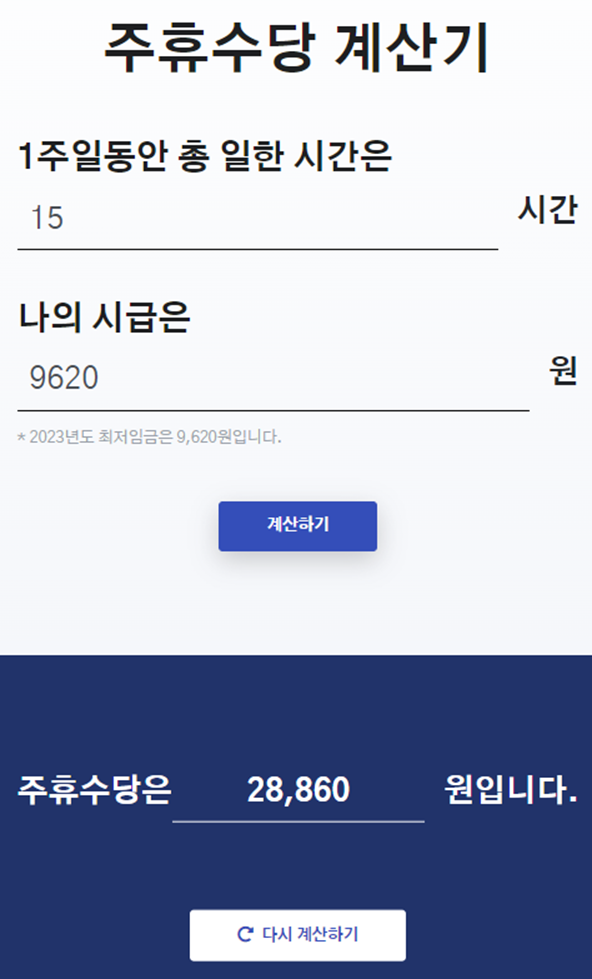2023년 적용 최저임금으로 계산을 해보도록 하겠습니다.