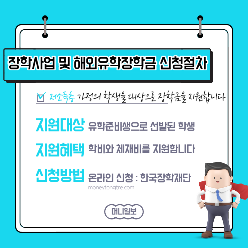 드림장학금(우수고등학생 해외유학장학금) 제도가 해외대학 입학을 희망하는 고등학생에게 학비와 체재비를 지원합니다. 지원대상은 다음의 조건을 모두 충족하는 자