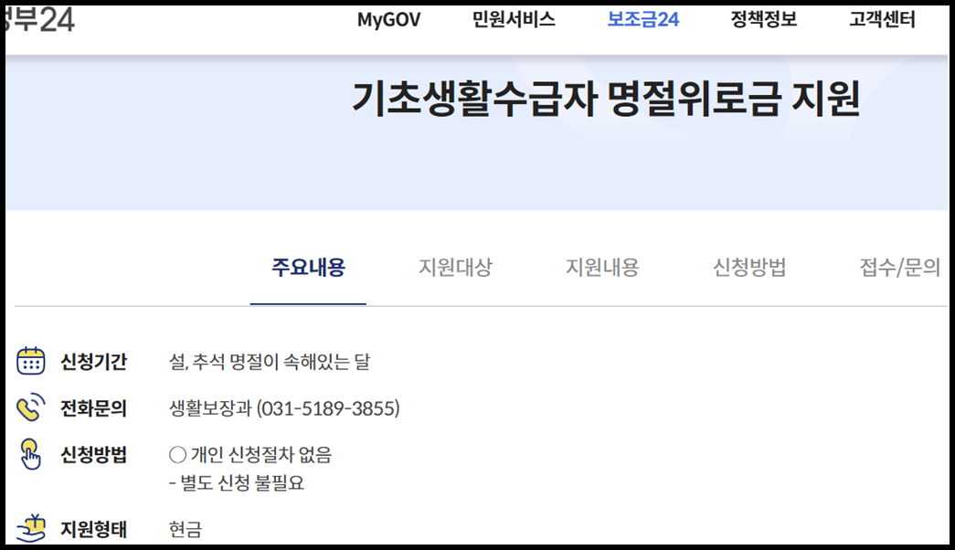 추석 연휴지원금 지원대상 정부 보조금24 신청방법 알아보기