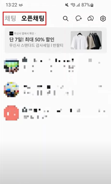 아래 사진 처럼 오픈채팅만 보이시면