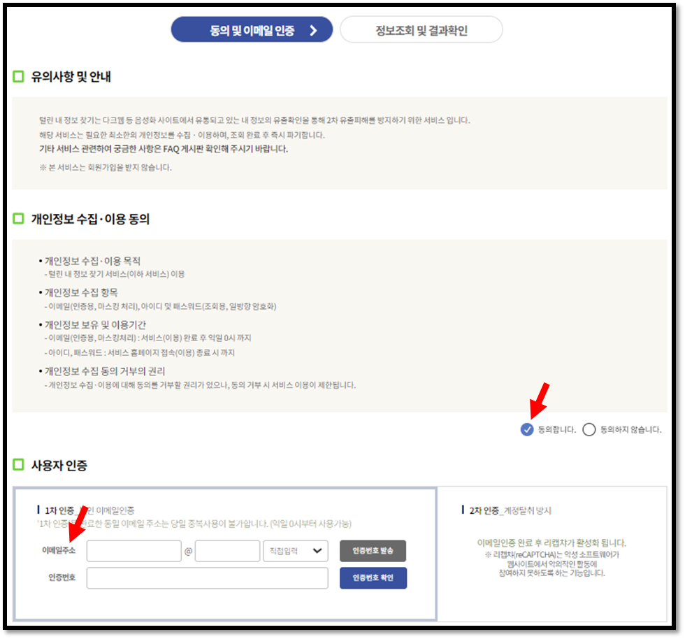 2. 털린 내 정보 찾기 서비스 이용 방법