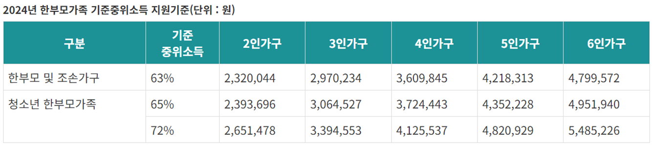 소득 인정액이 위 기준 이하인 경우 지원을 받을 수 있습니다.