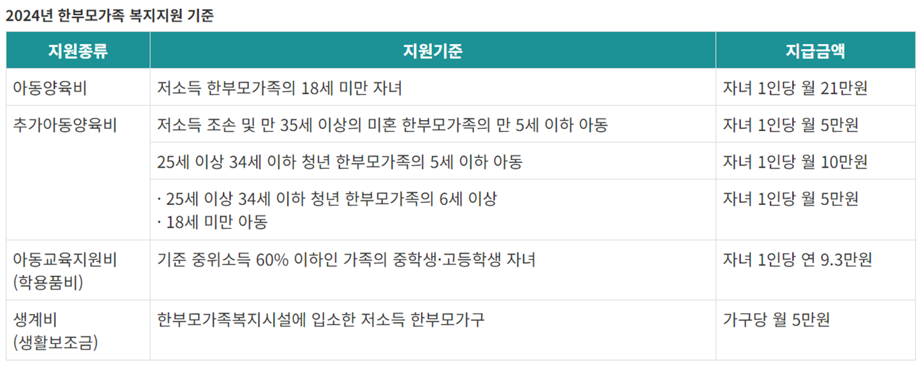 한부모가족 문의 및 신청은 거주지 주민센터 또는 복지로 홈페이지에서 온라인 신청이 가능합니다.