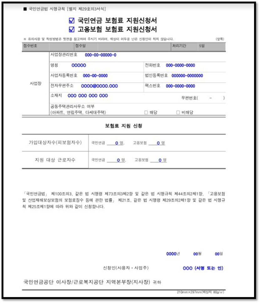 [국민연금 보험료 지원신청서]