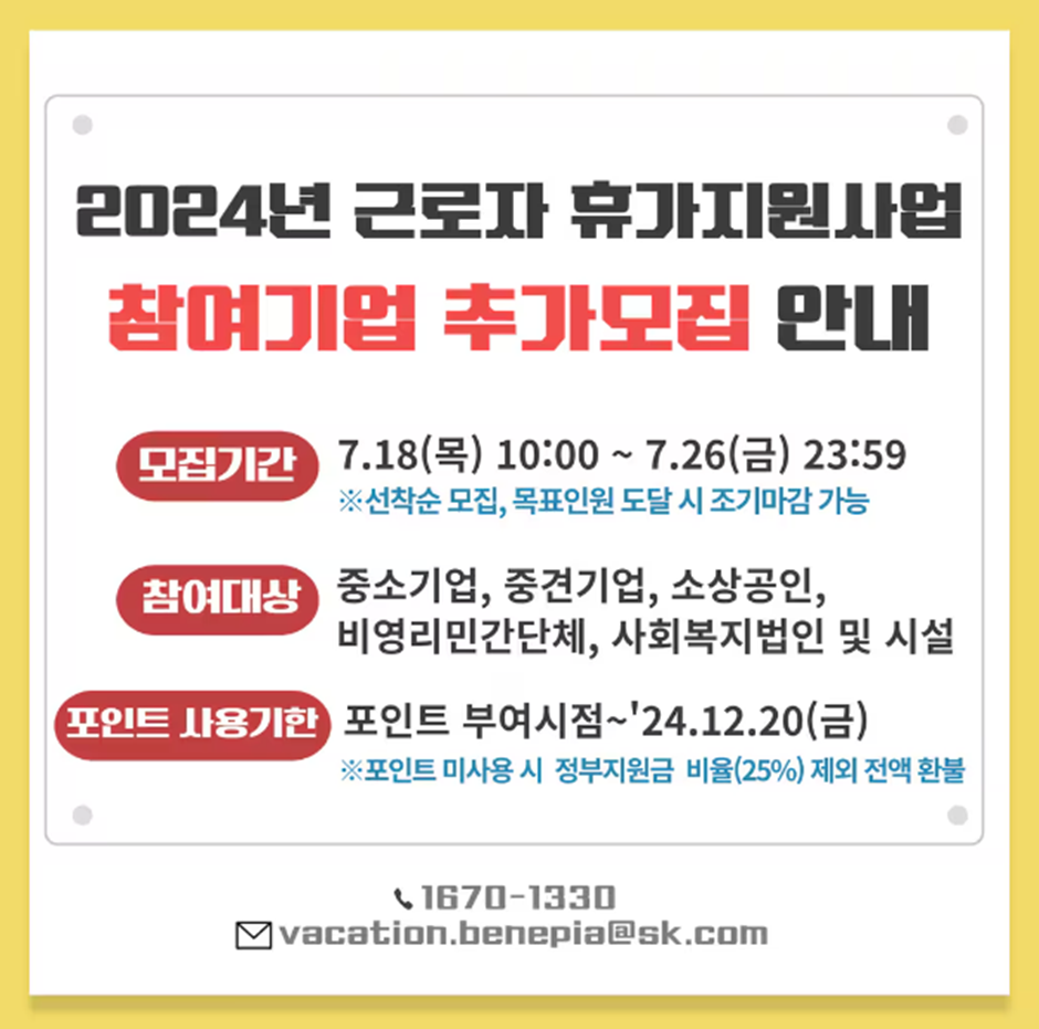 2024년 근로자 휴가지원사업 신청 안내
