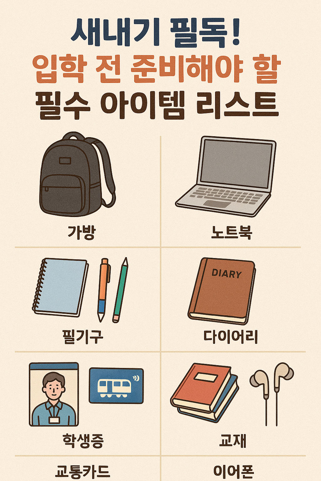 6. 입학 전 반드시 체크해야 할 준비물 리스트 (종합)