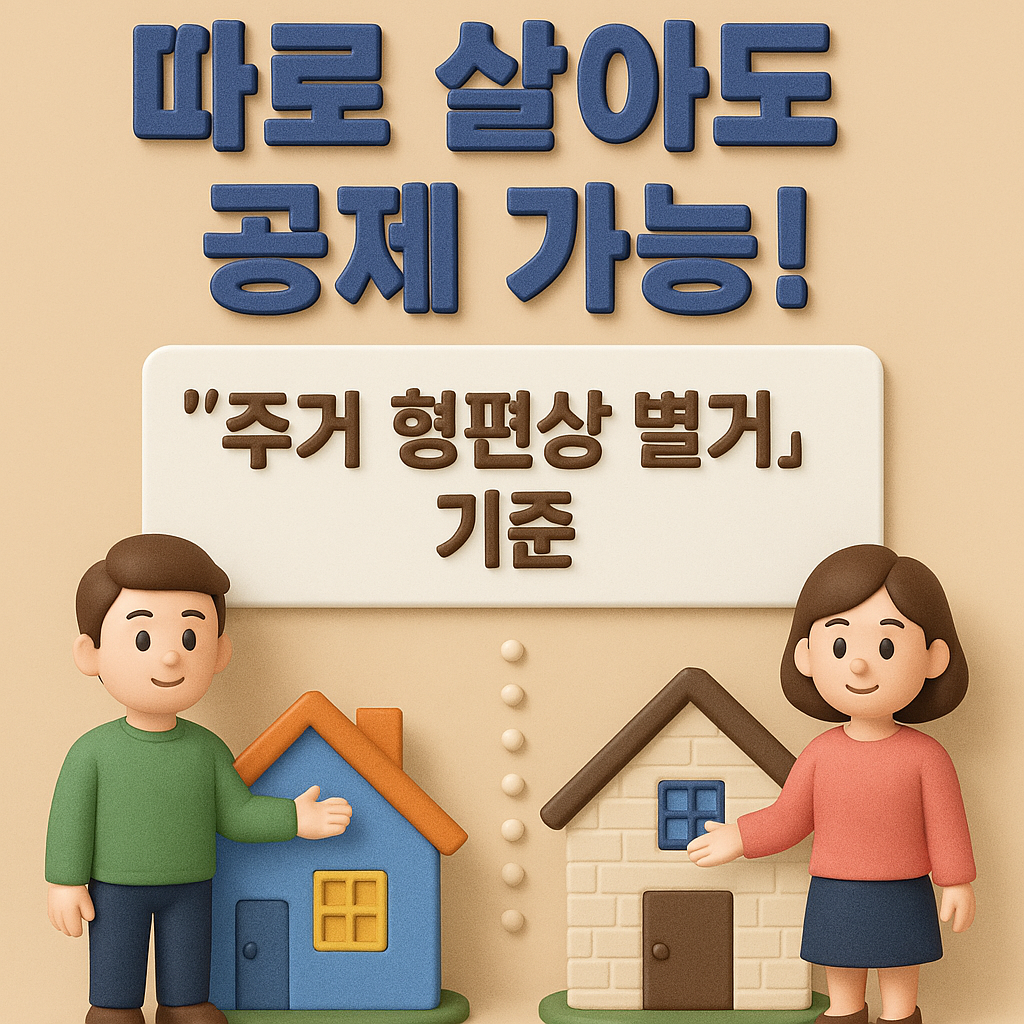 - ✅ 부양 요건: 함께 거주하거나, 주거 형편상 별거하더라도 실제로 부양하고 있어야 합니다.