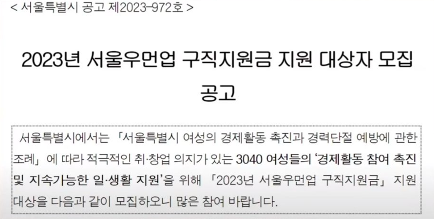 | 내용 | 경력 단절 여성에게 90만원을 지원 |