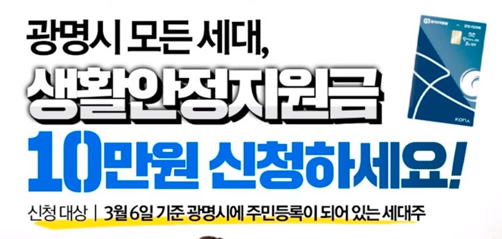 광명시는 공공물과 상승에 따른 시민들의 부담을 덜어주기 위해서 광명시 모든 세대에 생활안정지 연금 10만원을 지급하고 있습니다 지급 대상은 23년 3월 6일 24시 기준으로 광명시의 주민등록을 둔 세대주인데요 지난 3월부터 지급하고 있어서 이미 많은 분들이 받으셨을 겁니다 아직 18%의 주민들이 받지 않으셨다고 하는데요 온라인은 광명시청 홈페이지에서 신청이 가능하고 방문 신청은 신분증을 챙기셔서 주소지 행정복지센터로 가시면 됩니다 방문 신청은 5월 4일까지 가능합니다 신청기간이 얼마 남지 않았습니다 광명사랑화폐로 지급되며 7월 31일까지 사용이 가능합니다 기간 내에 사용하지 않은 금액은 환수 되니까 잘 챙겨서 사용해 주시면 좋겠습니다