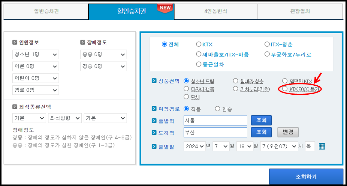 - 특실 서비스요금은 할인하지 않고(운임만 할인) 최저운임 이하로는 할인하지 않음